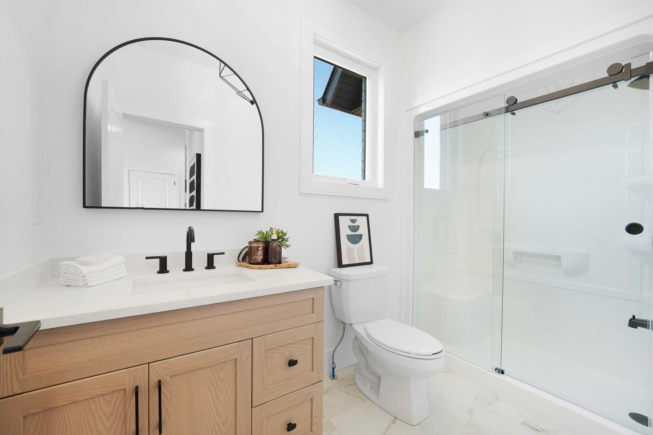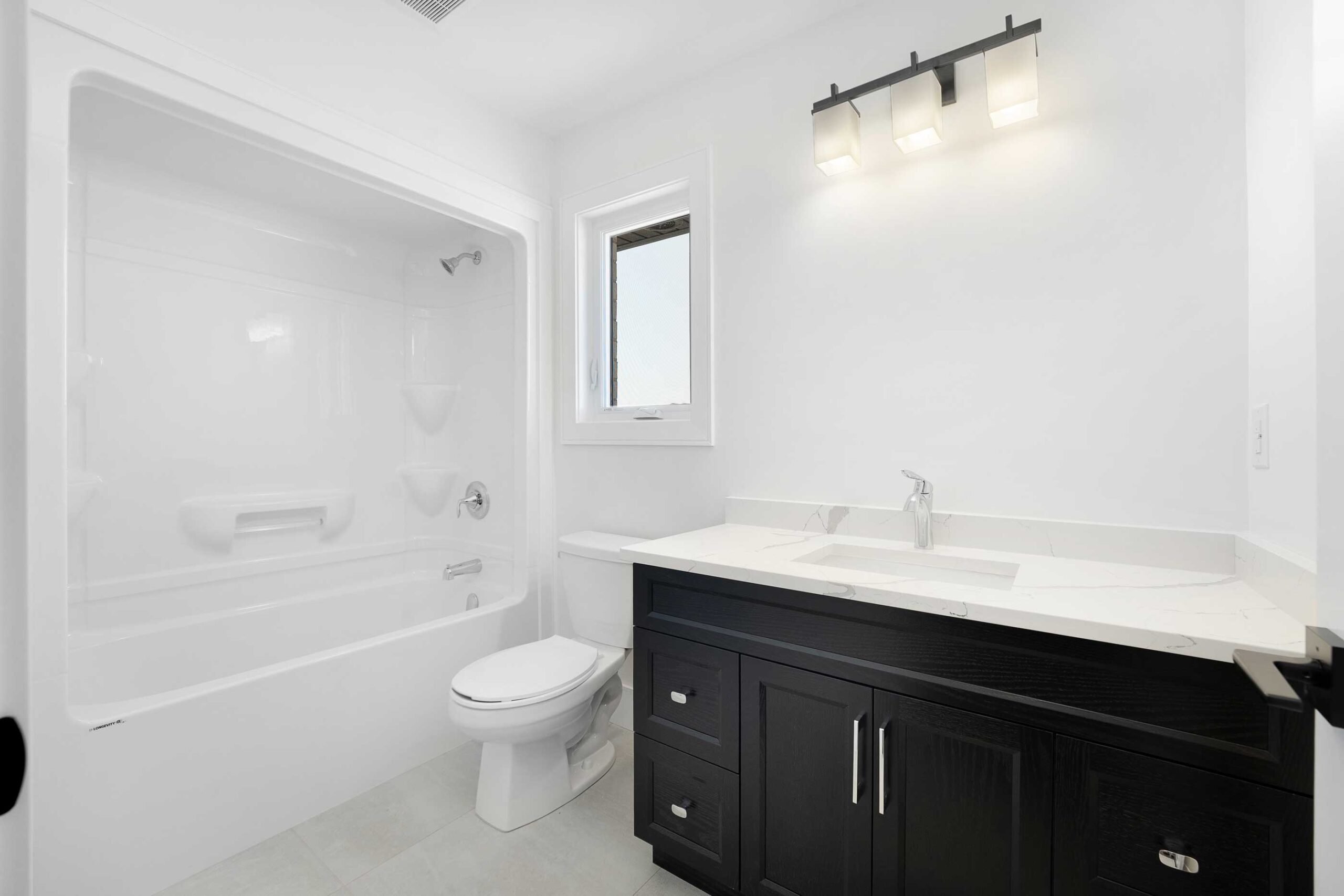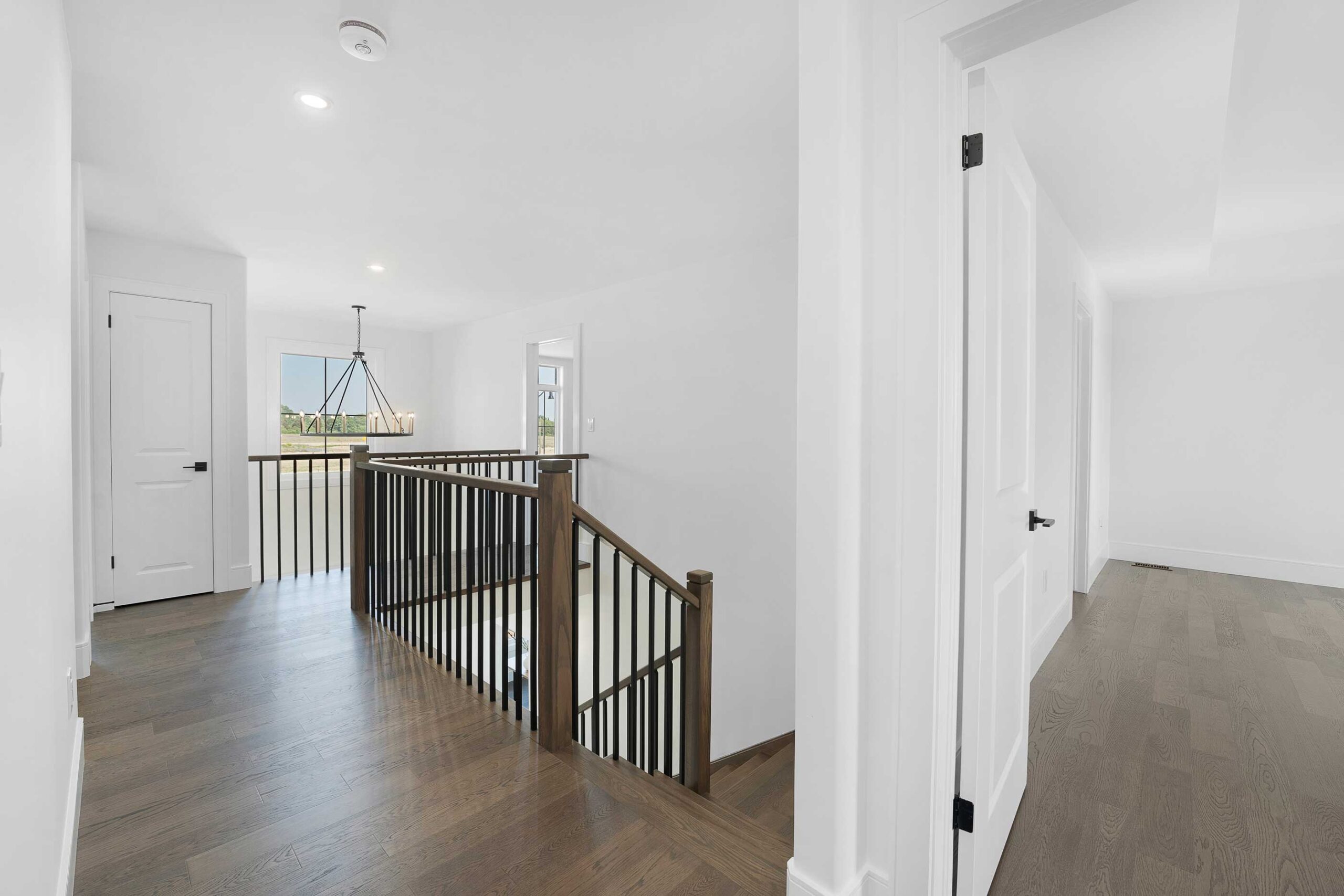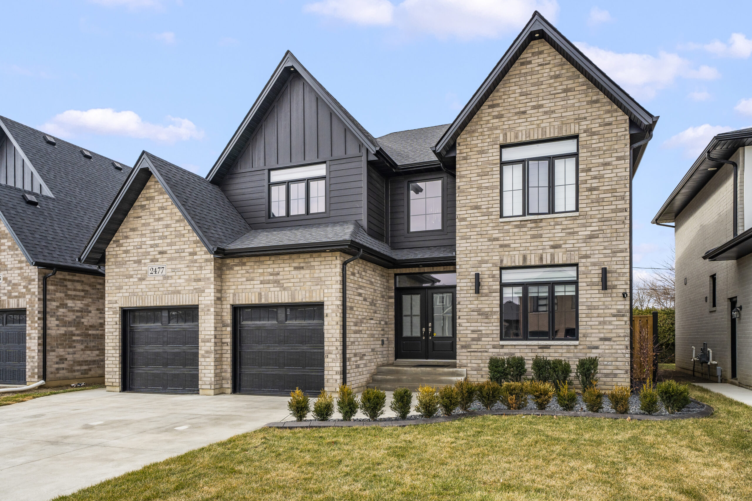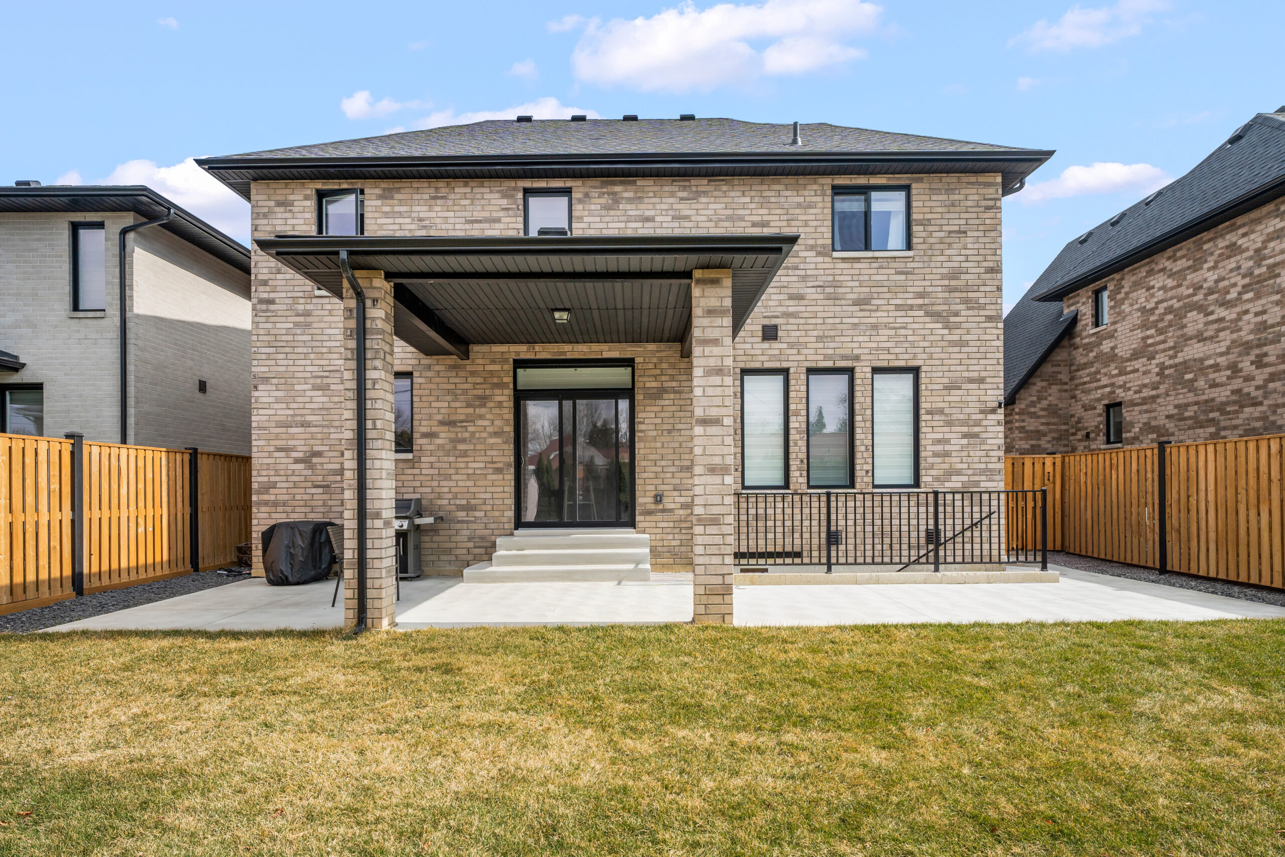 The Hudson Model is a contemporary two-storey home offering 4 bedrooms, 3 baths, and convenient second-floor laundry, thoughtfully designed for modern family living. The exterior features a refined blend of full brick with Hardie board, black windows, a covered front porch, and an enlarged rear patio roof supported by brick posts, delivering strong curb appeal. A double-car garage and grade entrance add both functionality and flexibility.